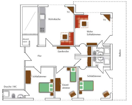 Große, gemütliche Wohnung (ca. 110m²) mit Wohnküche für 2-7 Personen